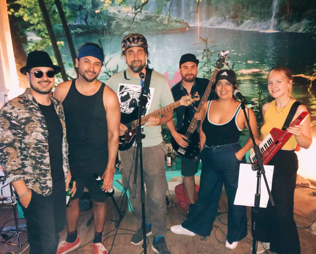 Tanz, Cumbia und traditionelle Rhythmen! Das ist, was die Chaskona Combo Band ausmacht, ein Kollektiv von Musikern aus Chile, Deutschland und anderen Teilen der Welt. Sie schaffen es, die verschiedenen Cumbia-Stile (Chicha, Andean, Villera Argenta, deutsche Cumbia) mit südamerikanischen Rhythmen, Jazz und Urban Rock zu verbinden. Ihr Live-Auftritt ist zu einem unverzichtbaren Bestandteil von Cumbia-Festivals geworden. Ihre Show liefert einen einzigartigen Energieschub, ergreifende Interaktion mit dem Publikum und ist auf der Suche nach Kontakt durch Trance-Cumbia, die die Bühne und das Publikum zu einer größeren Einheit werden. Das Repertoire umfasst eigene Lieder, Klassiker der alten Cumbia und Neo-Cumbia, Reminiszenzen an den Reggae und viele andere Überraschungen, gewürzt mit Trance-Improvisationen, die die Körper zum Tanzen bringen. Wenn Du Dir unter einer Show vorstellst, zu tanzen, bis Dein Körper nicht mehr tanzen kann, dann musst Du zu einem Konzert der Chaskona Combo Band gehen!