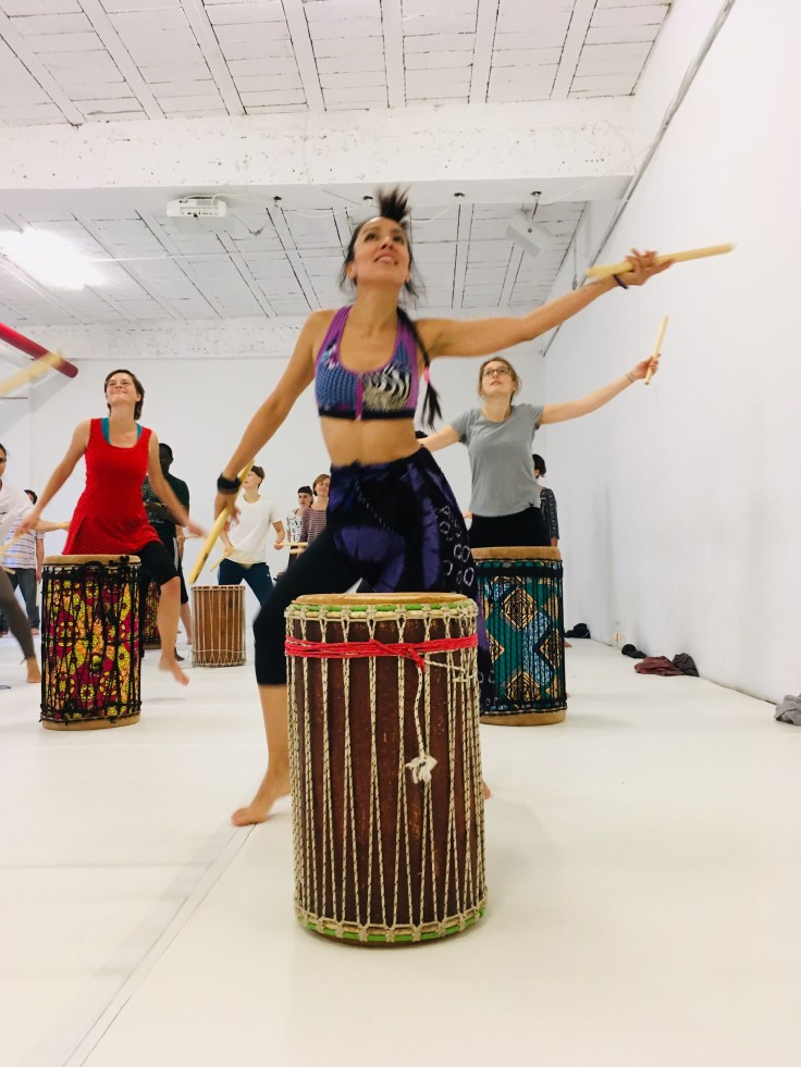 Westafrikanischer Tanz und Musik eignen sich zur Förderung der Gesundheit, da der Körper ganzheitlich einbezogen wird, das Körpergefühl gestärkt wird und man fit und beweglich bleibt. Die isolierten Bewegungen eines jeden Körperteils führen darüber hinaus zu einer verbesserten Körperwahrnehmung. Dadurch, dass die unterschiedlichen Bewegungsabfolgen immer wiederholt werden, kommt es zu einem Wechsel zwischen Anspannung und Entspannung der einzelnen Körperteile, sodass man sich (mit etwas Übung) begleitet von den Trommelklängen regelrecht in Trance tanzen kann. Darüber hinaus vermitteln die Kursleiter*innen die Bedeutung der einzelnen Tänze, die meist einen Bezug zu einem soziokulturellen Ereignis haben.