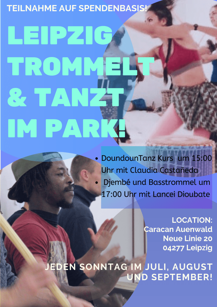 Der Westafrikanischer “Sommer Tanz freies Angebot“ ist als wöchentliches sonntags Kursangebot in Clara-Zetkin-Park vorgesehen, welches den Teilnehmer*innen die Welt der Musik und des Tanzes Westafrikas eröffnen und näherbringen soll. Auf der einen Seite ist es ein sportliches Angebot, welches mittels Choreografien und Tanzschritten, welche den ganzen Körper einbeziehen, Kondition und Fitness fördern, aber auch zu einem besseren Körper- und Rhythmusgefühl verhilft. Andererseits kann mittels der nonverbalen Kommunikation über die Sprache von Musik und Tanz in eine andere Kultur eingetaucht und am eigenen Körper erlebt werden, mit dem Ziel, Vorurteile abzubauen, Berührungsängste zu überwinden und zur Vielfalt des Leipziger Kulturangebotes beizutragen.